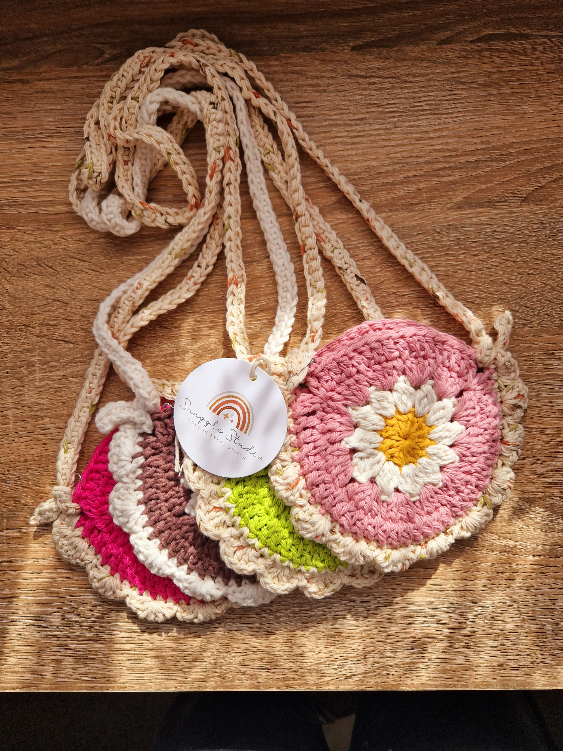 Introducing my charming Crochet Flower Toddler Bag, designed with little ones in mind. This delightful accessory features a crochet flower pattern that adds a touch of playful elegance to any outfit. Made from 100% cotton this bag is durable, it’s gentle on young skin and built to withstand daily adventures. The adjustable strap ensures a comfortable fit, while the interior provides ample space for toddlers to carry their favorite treasures. Ideal for birthdays or special occasions, this bag is both practical and adorable, making it a must-have for any stylish toddler.