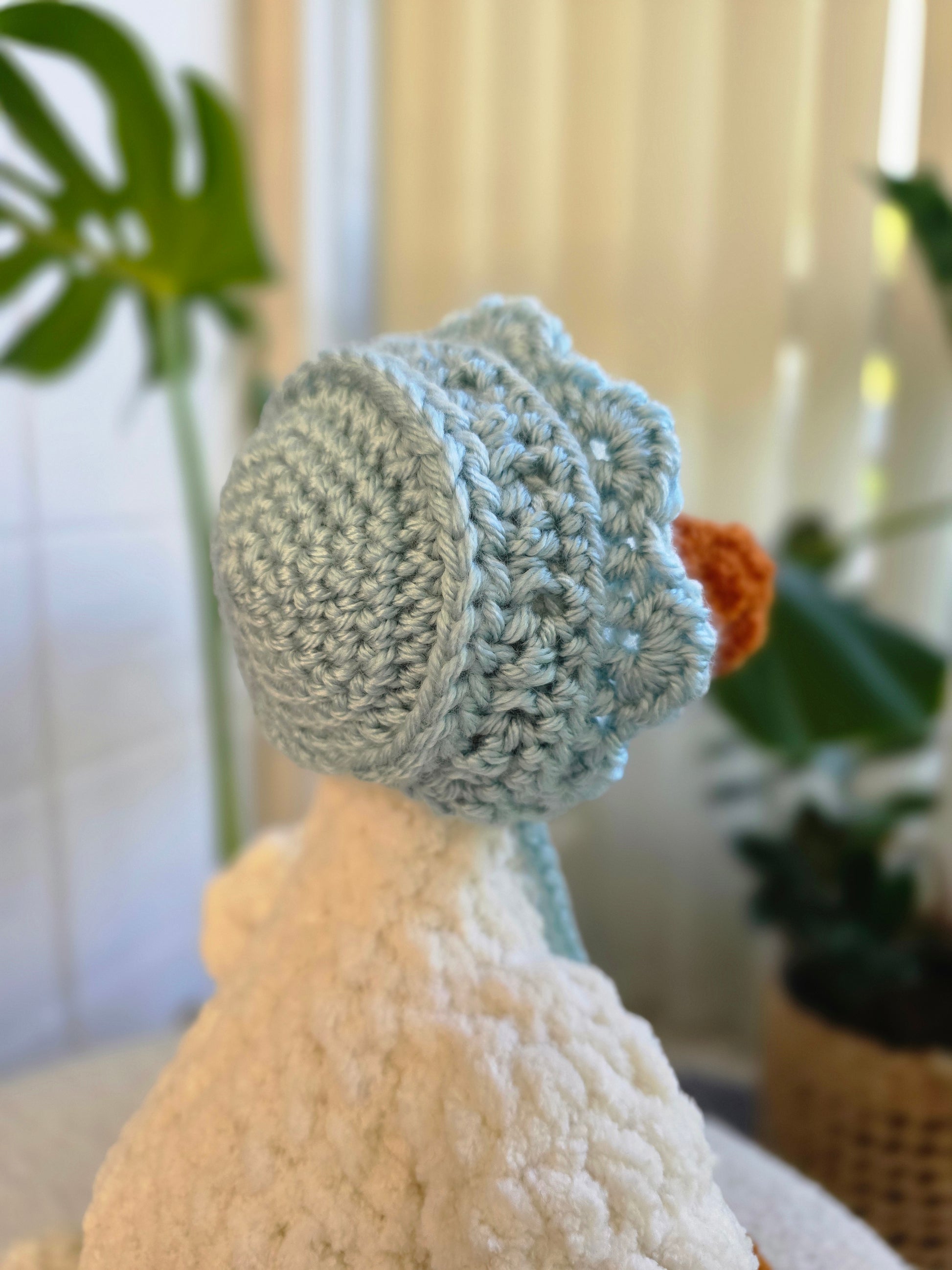 This Goose with Bonnet Crochet Plushie is an adorable and charming handmade creation that combines cuteness with coziness. The soft, plush goose features a lovely bonnet, adding a whimsical touch to its design. Carefully crocheted with high-quality yarn, this plushie boasts delicate details, from its sweet beak and wings to its soft, huggable body. Perfect for gifting, display, or as a comforting cuddle buddy, this delightful goose brings warmth and joy to any nursery or home. It’s the ideal companion for those who love unique, handcrafted treasures.
