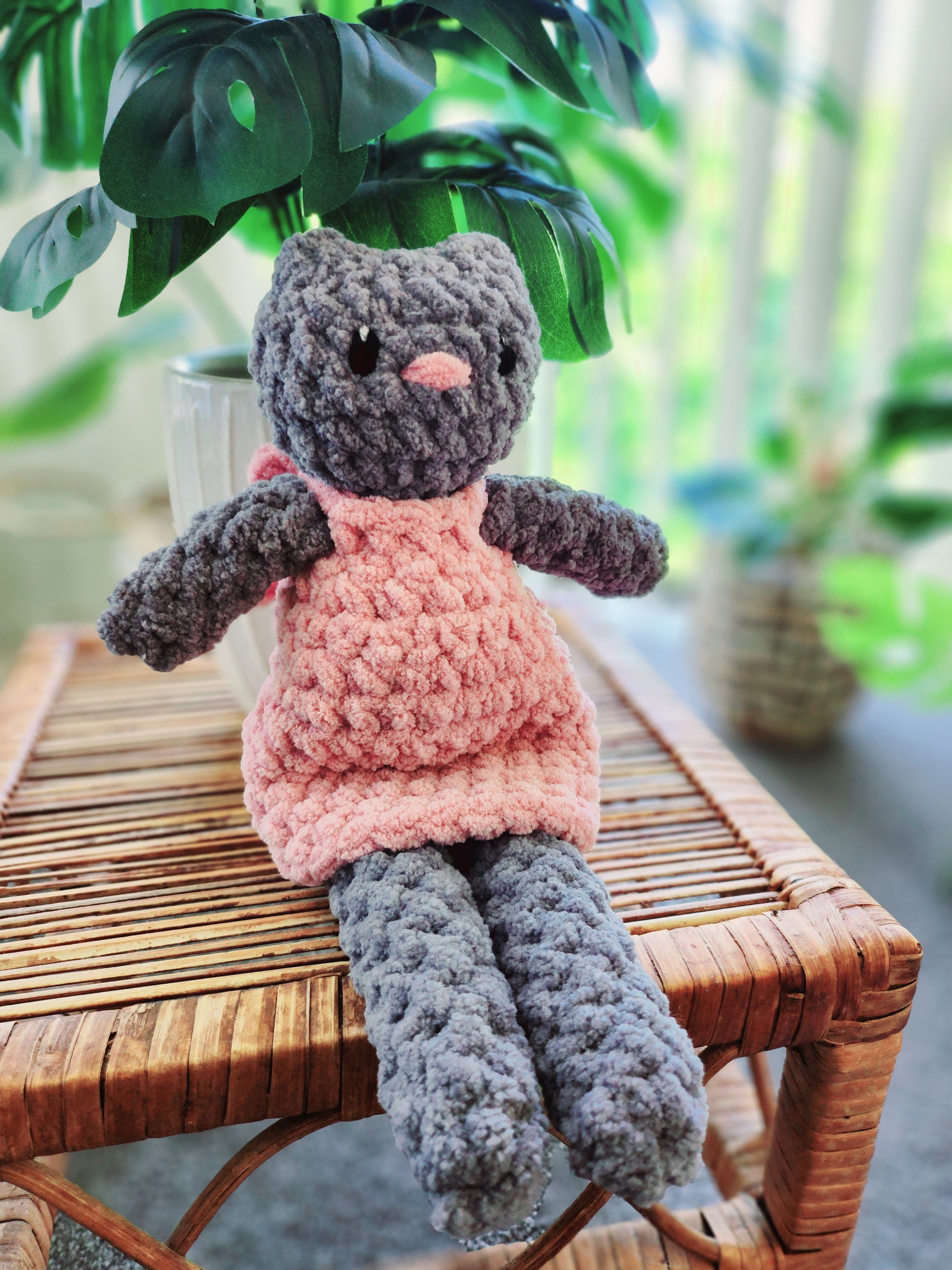 Meet Kitty the Cat, your new favorite crochet plushie! Adorably crafted with soft yarn, Kitty features a charming bow dress that adds a touch of whimsy to her look. With her big, expressive eyes and cozy, huggable body, she’s perfect for snuggles and companionship. Whether for a child’s playtime or as a delightful decor piece, Kitty the Cat is sure to bring joy and warmth to any space. Bring home this enchanting plushie today and let the cuddles begin!
