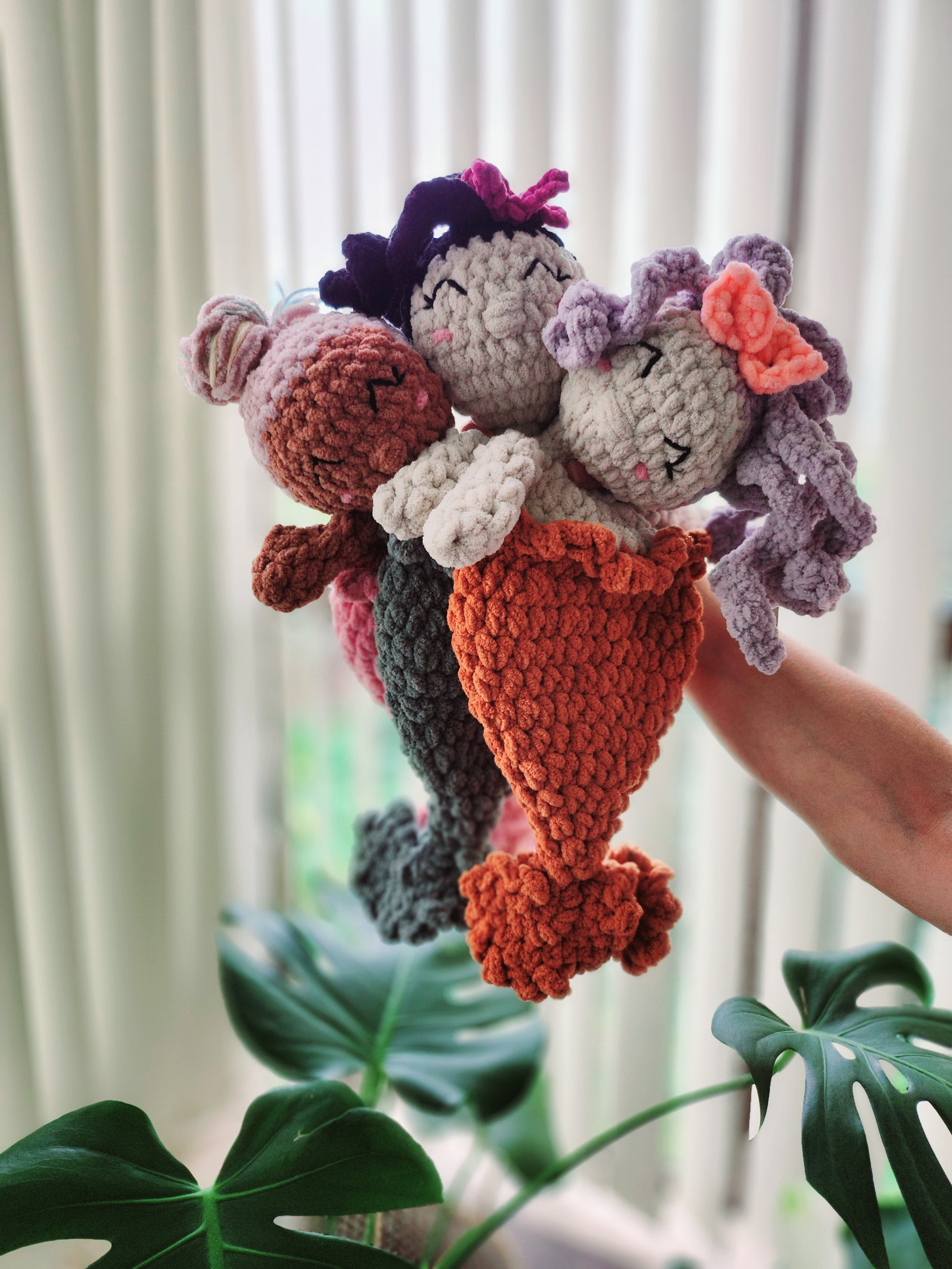 Dive into the enchanting world of cuddles with my Mermaid Crochet Snuggler! Handcrafted with love and meticulous detail, this adorable snuggler features a charming mermaid design complete with a bold coloured tail and soft, cozy yarn. Perfectly sized for little hands to hug and hold, it's an ideal companion for imaginative play or bedtime snuggles. Whether swimming through imaginary seas or lounging on land, our Mermaid Crochet Snuggler Toy promises to bring joy and comfort to every adventure. Embrace the magic today!