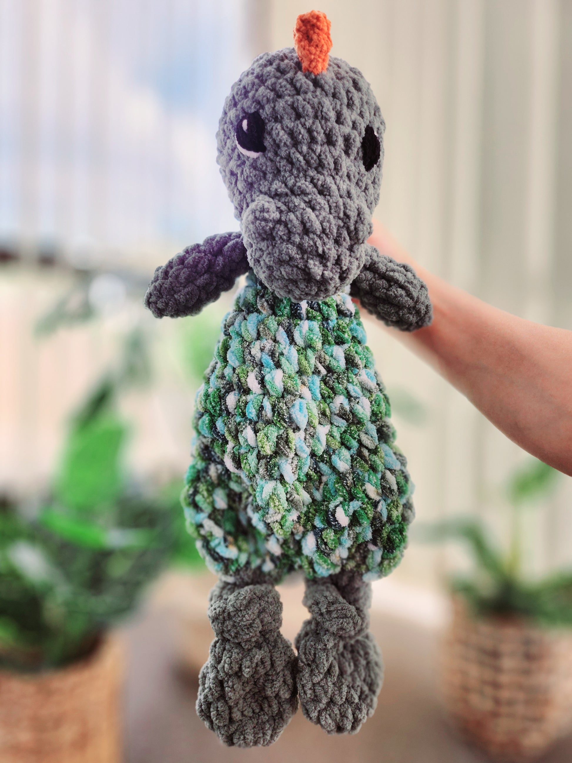 Dive into a prehistoric adventure with our charming Crochet Dinosaur Snuggler! Handcrafted with love and care, this cuddly companion features a friendly dinosaur head atop a cozy, soft blanket body. Perfectly sized for little hands to grasp and snuggle, it’s an ideal companion for soothing bedtime routines or imaginative play during the day. Crafted from high-quality yarn, each stitch is meticulously detailed to bring out the dinosaur’s playful personality. Whether gifted to a newborn or cherished by a toddler, our crochet dinosaur lovey promises endless hugs and smiles!