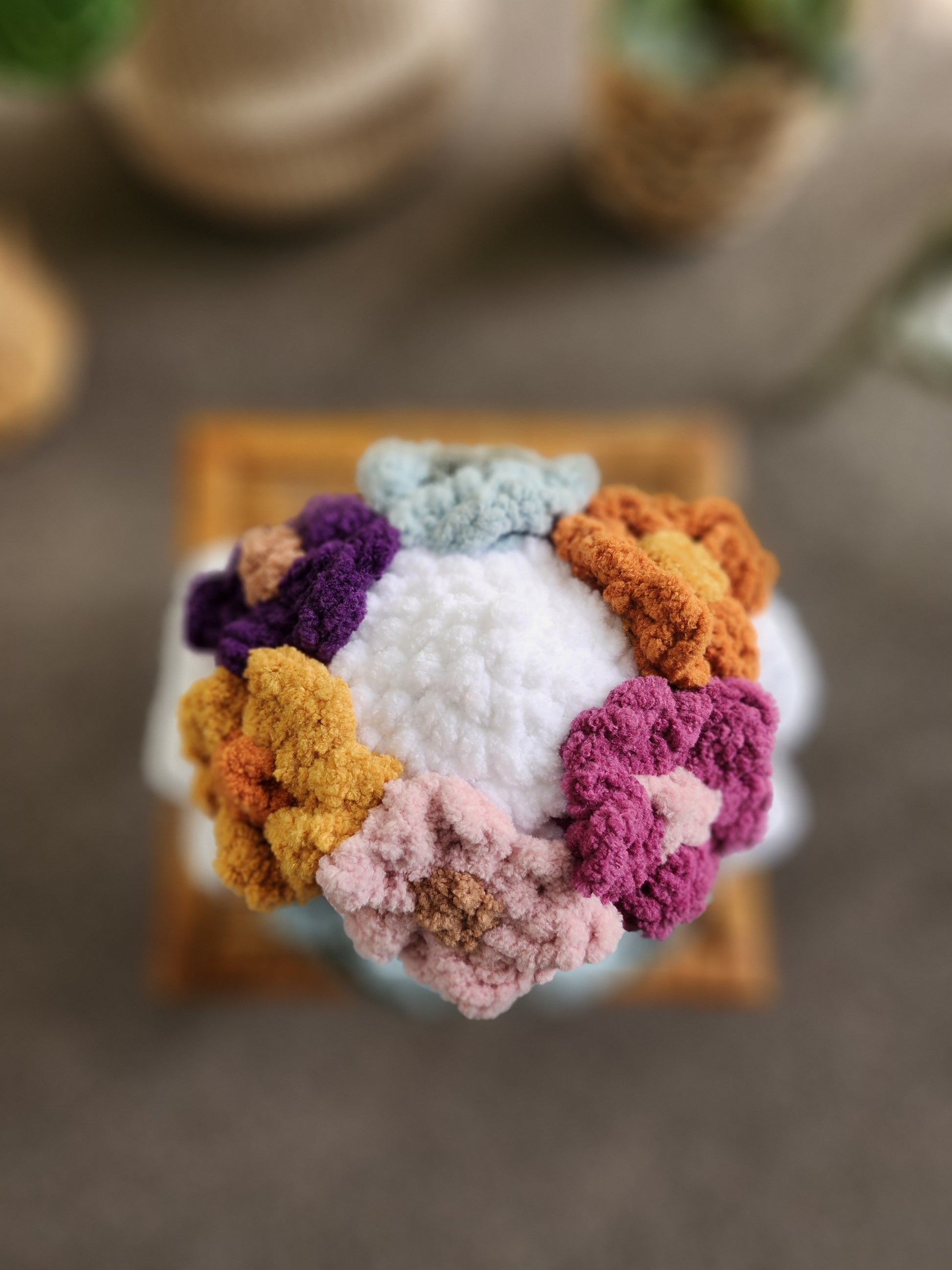 Lovingly crocheted with attention to detail, featuring floppy ears, a sweet embroidered nose, pretty double frilled skirt and flower crown, extra time and care has been taken with this piece.